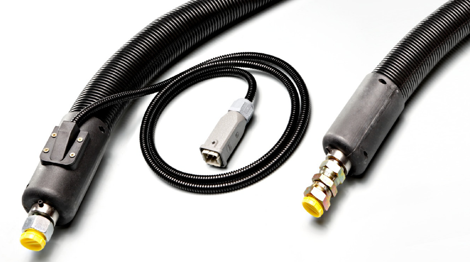 在这种特殊的开发的产品中,传输粘合剂或其它的热塑性产品的内层管是可以更换的,这使得软管能够快速的再使用,最值得注意的是大大的降低了使用成本。这种软管的加热软管系统,使得从软管的阻塞胶管内盖可以简单地更换成新铁氟龙软管。特别适合于传输反应性热熔粘合剂。我们生产的可更换内衬的热胶软管与系统兼容,集成的材料适合于相应的要求,因此可以考虑由于特殊应用而产生的特性要求。特殊管件或电器插头和头部的连接。